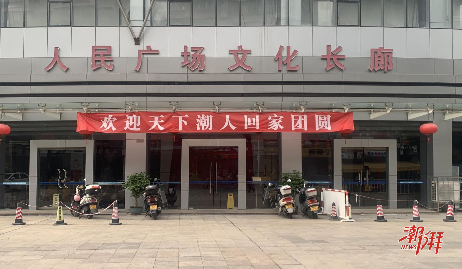潮州市人民广场文化长廊挂上宣传横幅。